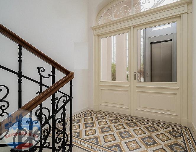 Интерьеры сочетают дизайн и современные стандарты комфорта: высокие потолки, деревянные паркеты, большие окна, качественные кухни и повышенный уровень безопасности. В ходе реконструкции дома были сохранены оригинальные архитектурные детали, подчёркивающие характер и аутентичность здания. Весь проект разработан с акцентом на детали, долговечные материалы и современный комфорт.